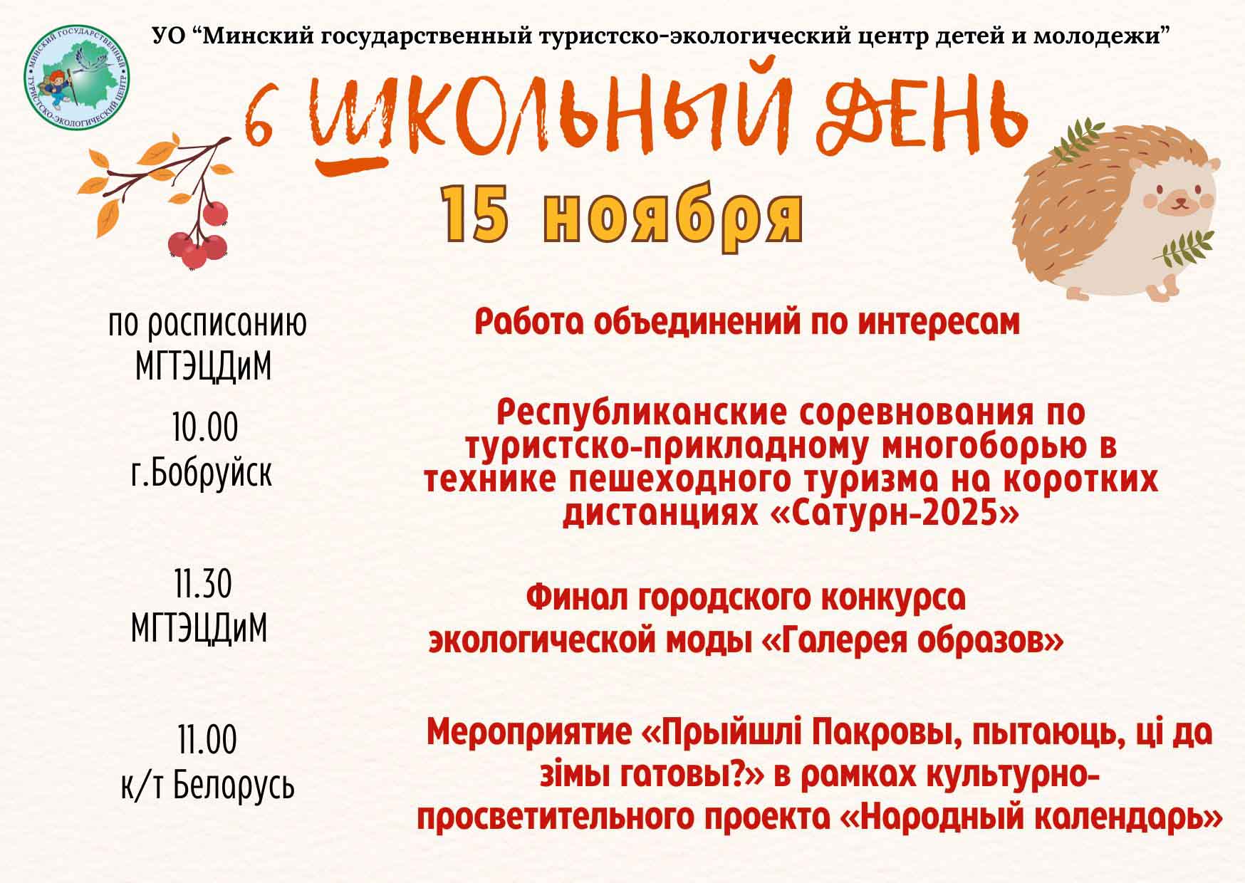Афиша мероприятий 15 ноября