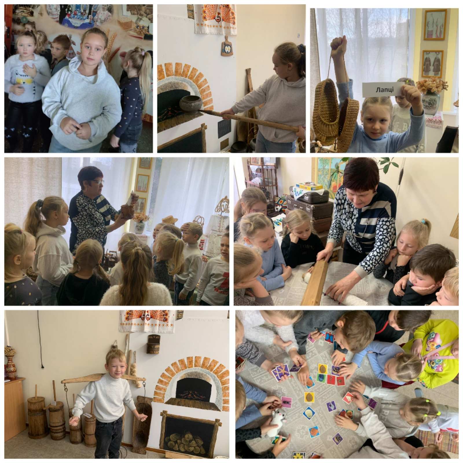 А майстар- класы , праведзеныя ў музеі, выклікалі сапраўдны ажыятаж , бо кожнаму з дзяцей хацелася адправіць чыгунок з ежай у печ, адбіць пранікам ручнікі, папрасаваць бялізну, забіць драўляным малатком цвік, зручна размясціць на плячах каромысел і г. д.