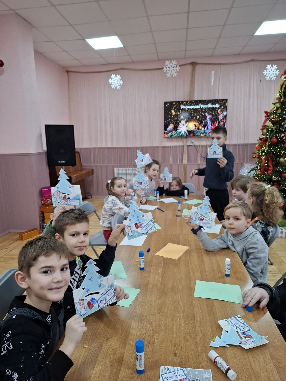 Под чутким руководством педагогов, ребята сделали рождественскую открытку своими руками, которую смогут подарить родным или друзьям.
